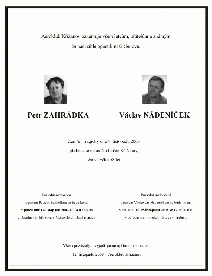 v 11:38 došlo na letišti Křižanov ke katastrofě kluzáku L23, při které zahynuli