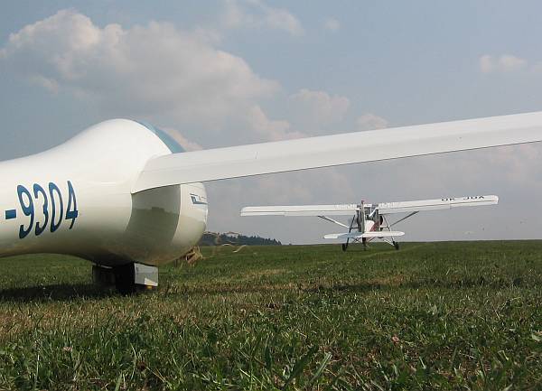 Bohužel při přistání do terénu došlo k poškození větroně VSO 10 (startovní
