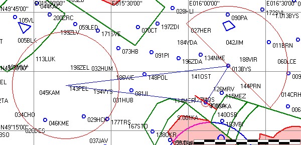 | 013BYS | 20.1 km | 032° | R=28.0km, Rad1=135°, Rad2=315°, Max. výška je 2900m | ||||||||