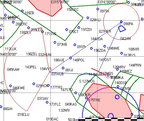 | 031HUB | 67.8 km | 236° | R=35.0km, Rad1=350°, Rad2=210°, Max. výška je 2900m | ||||||||