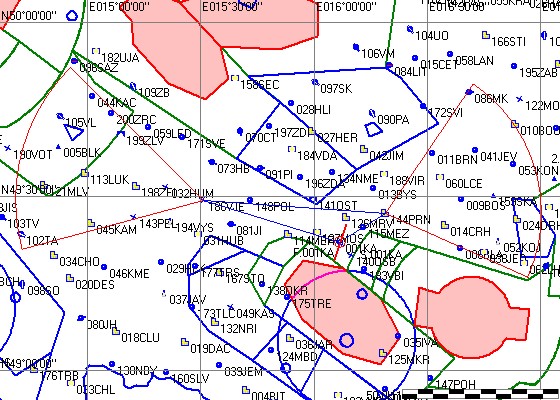 | 144PRN | 58.6 km | 094° | R=50.0km, Rad1=114°, Rad2=34°, Max. výška je 2900m | ||||||||